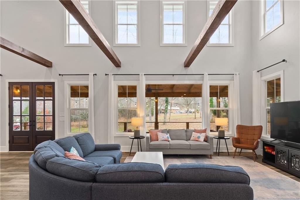 COUNTRY COMFORT ALL YOUR OWN!!!! DONT MISS THIS RARE OPPORTUNITY to purchase an ACTIVE SHORT TERM RENTAL only 5 MILES TO DOWNTOWN DAHLONEGA, 4 MILES TO ACCENT CELLARS, and 3 MILES TO MONTALUCE...OR...TO CALL THIS BEAUTIFUL PLACE YOUR OWN HOME!!! WIDE-OPEN LIVING SPACES on main level AND upper(MEDIA/FAMILY ROOM/DEN) level AND terrace(GAME ROOM) levels as well! CORNER-TO-CORNER extra-wide COVERED FRONT AND SIDE PORCHES and a private BACK DECK offer more opportunities to GATHER AND ENJOY! The PERFECT PRIMARY SUITE is also on the MAIN LEVEL with a PERFECTLY APPORTIONED PRIMARY BATHROOM w/double vanity, separate tub /shower (and private water closet); a SUPER LARGE primary closet space AND the laundry is CONNECTED TO THE CLOSET space as well! The upstairs area has its own EXTRA-LARGE FAMILY ROOM/DEN/MEDIA ROOM and 3 more oversized bedrooms for the rest of the family or guests! THE BASEMENT AREA has been converted to one-half GAME ROOM and one-half storage with double garage doors if you needed to park inside or use as a major WORKSHOP area. Plenty of LEVEL GROUND outside for fun and games or HUGE GARDEN AREA! THIS IS A MUST COME & SEE TO APPRECIATE HOME...THAT MEANS....YOU MUST COME & SEE IT!!!